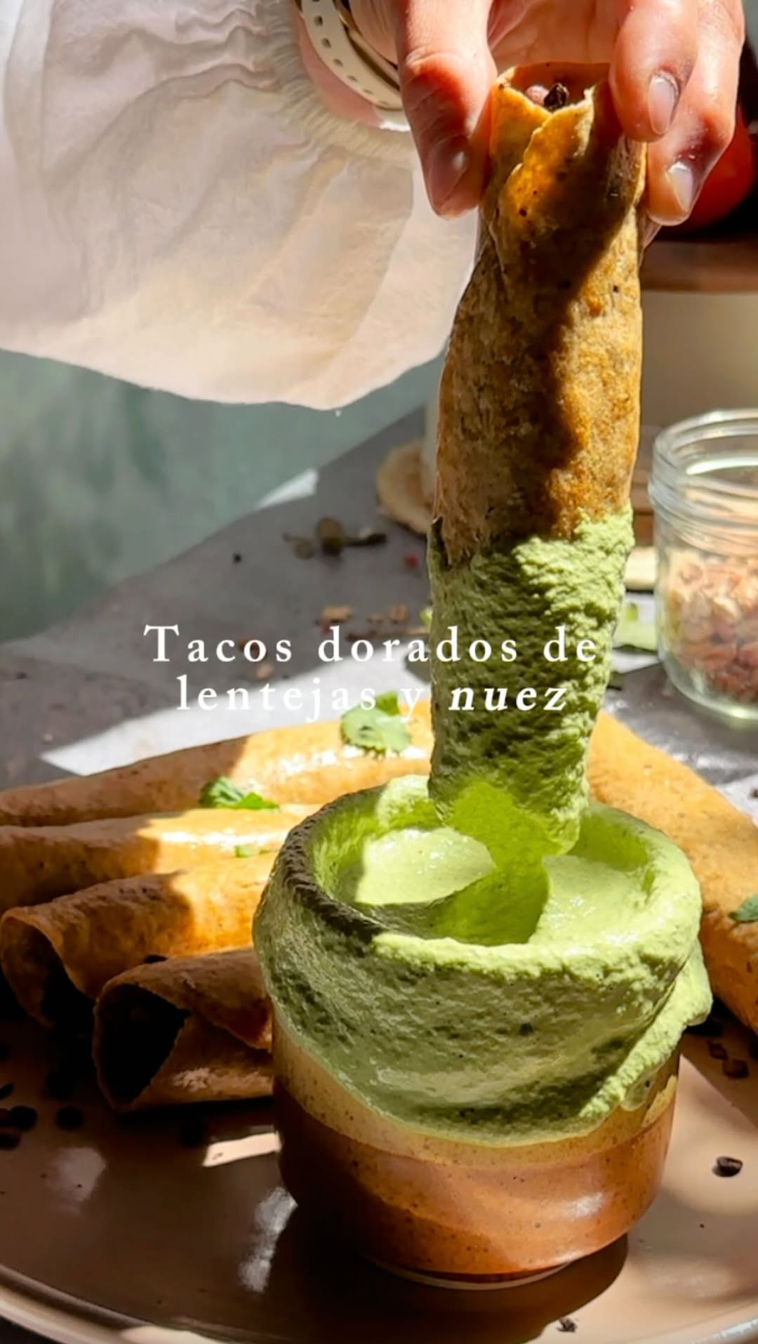 Tacos dorados de lentejas y nuez